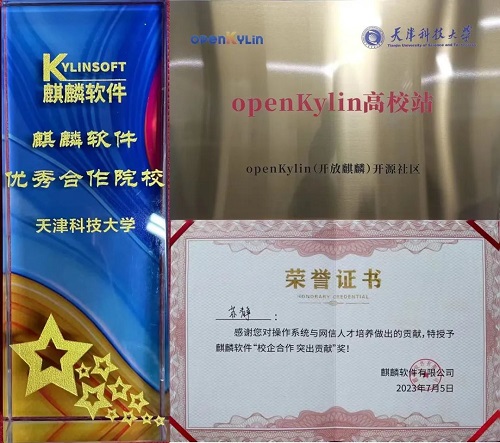 近年来,天津科技大学与麒麟软件以天津市特色化示范性软件学院建设为平台,在人才培养、课程共建、教材建设、课程思政、实践基地、课题合作、师资培训、学科竞赛、教材开发等多方面进行合作,成果丰硕。自2020年10月校企合作“云签约”奠定了合作基础后,双方开展超过10次、覆盖500余人次的企业参观走访、联合党建等活动;25名教师通过了麒麟操作系统培训高级讲师认证;合作的国内首个基于网信领域适配测试“真项目”的引产入校合作模式项目——“麒麟工坊之天津科技大学信创适配实训营”入选2021年度中国高等教育博览会“校企合作 双百计划”典型案例,成为信创企业的校企协同育人特色样板;天科大“你好麒麟”赛队荣获第八届中国国际“互联网+”大学生创新创业大赛产业赛道国赛铜奖;与麒麟软件联合申报的《产业牵引多方协同全过程融合的特色化软件人才培养模式探索与实践》荣获天津市教学成果一等奖;《信创实验室》《基于银河麒麟的操作系统课程建设》《天津科技大学-麒麟软件就业实习基地项目》等项目分别获教育部产学合作协同育人项目和供需对接就业育人项目。